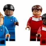 Oživte atmosféru zápasu díky tribunám, doplňkům a promyšlenému rozmístění minifigurek v červených a modrých dresech.