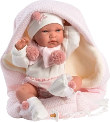 Měkoučká růžová zavinovačka s plyšovou podšívkou udrží panenku v teple a pohodlí. Snadné zavázání stuhou zvládnou i malé dětské ruce.
