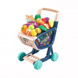 Roztomilý dětský nákupní vozík s bohatým příslušenstvím je ideální pro malé hospodyňky i malé obchodníky. Obsahuje plastové ovoce a zeleninu, které lze „krájet“ pomocí bezpečných nástrojů. Hračka podporuje rozvoj jemné motoriky, představivosti a učení o potravinách skrze zábavné hraní na obchod.