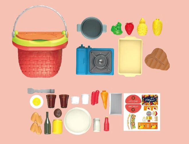 Roztomilý piknikový košík s doplňky pro malé gurmány nabízí zábavné a kreativní hraní. Obsahuje celkem 27 kusů, včetně ovoce, zeleniny, láhve a talířku, díky nimž si děti mohou připravit svůj vlastní piknik. Podporuje kreativitu, představivost a role-play při hře doma i venku.