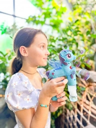Stačí pouze zmáčknout spoušť a jednorožec začne tvořit nádherné bubliny, zatímco hraje zábavnou melodii. Tato hračka přináší hodiny venkovní i vnitřní zábavy, ideální pro dětské oslavy a hraní v zahradě.