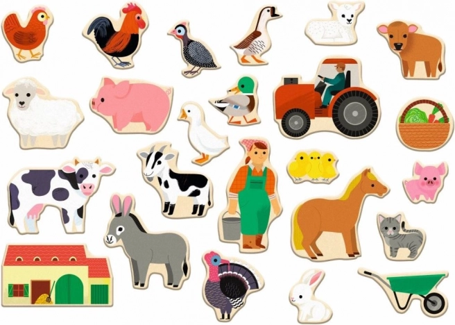 - 24 kusů dřevěných magnetů s farmářskou tematikou