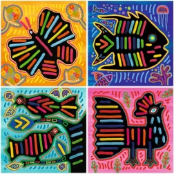 Tato hra umožňuje dětem podle návodu jednoduše provlékat žinylkové drátky velkými otvory v ilustrovaných kartách, čímž vytvářejí nádherný barevný design. Je to snadná aktivita, která je vhodná i pro mladší děti.