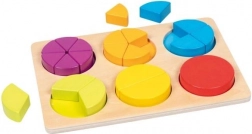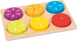 Dřevěné vzdělávací puzzle Zlomky je ideální pomůckou pro malé děti, které se chtějí naučit základy matematiky ve formě zábavné hry. Díky barevným segmentům a jednoduchému designu si děti snadno osvojí koncepty jako poloviny, čtvrtiny a další zlomky. Dřevěná podložka usnadňuje skládání a zajistí delší životnost produktu.