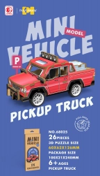 Model Pickup po sestavení dosahuje rozměrů 13x6,2x6 cm, a díky mechanismu zpětného natažení se po dokončení může pohybovat.