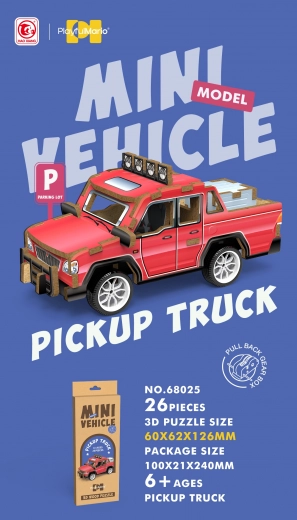 Dopřejte si fantastický zážitek ze sestavení tohoto 3D dřevěného puzzlu Pickup. Tento detailní model je skvělý pro děti od 6 let a starší, díky čemuž je ideálním způsobem, jak zlepšit motorické dovednosti a trpělivost. Puzzle se skládá z 26 precizně vyřezaných dílků a poskytuje hodiny zábavy.