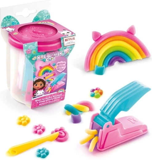 Tato kreativní sada inspirovaná oblíbeným seriálem GABBY’S DOLLHOUSE z Netflixu přináší dětem spoustu zábavy s modelínou v praktickém růžovém kelímku. Děti mohou vytvářet duhové kreace, tvarovat postavičky koťátek a objevovat nové nápady pokaždé, když otevřou kelímek.