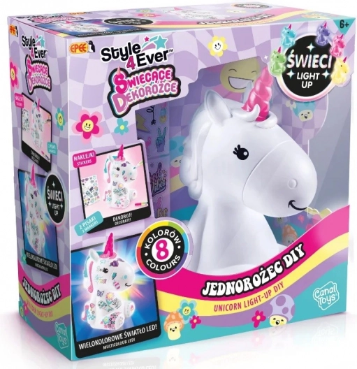Jednorožce lze libovolně zdobit díky přiloženým doplňkům a dekoracím. Po rozsvícení zazáří v 8 barvách, které vykouzlí pohádkové světlo pro čtení, relax nebo večerní usínání. Sada podporuje rozvoj představivosti a jemné motoriky, přičemž vše potřebné je už v balení včetně baterií.