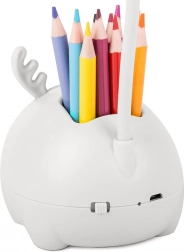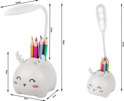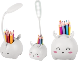 Tato multifunkční dětská LED lampička promění pracovní i noční koutek v útulné a upravené místo. Díky integrovanému organizéru na psací potřeby a držáku telefonu máte vše po ruce, zatímco flexibilní rameno s LED osvětlením nasměrujete přesně tam, kde je potřeba. Příjemný povrch, bezpečné provedení a napájení přes USB z ní dělají perfektní volbu pro každodenní používání.