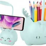Tělo lampičky slouží jako kelímek na psací potřeby a má výřez pro bezpečné uložení telefonu při učení i zábavě.