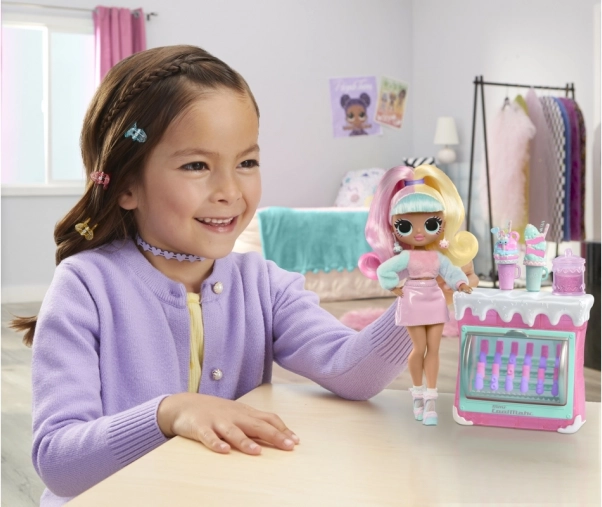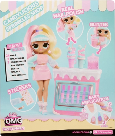 Proměňte hru ve sladké nehtové studio! Sada L.O.L. Surprise O.M.G. Sweet Nails – Candylicious Sprinkles Shop umožní dětem vytvořit personalizované nehty: nalepit, opilovat do tvaru, nalakovat a dozdobit třpytkami nebo samolepkami. Díky praktickému úložišti ve stylu mini ledničky si mohou hotové nehty bezpečně uložit a vystavit.
