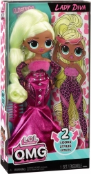 Panenka L.O.L. Surprise! O.M.G. Lady Diva přináší přepychový styl, třpytivé detaily a výrazný růžový look, který zaujme na první pohled. Díky pohyblivým kloubům je skvělá na pózování a focení, zatímco bohatá výbava doplňků podporuje kreativní kombinování outfitů.