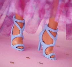 Barbie je doplněna o šperky a detailně zpracovanou obuv, které dokreslují její celkový půvab.