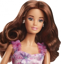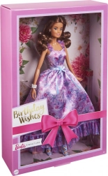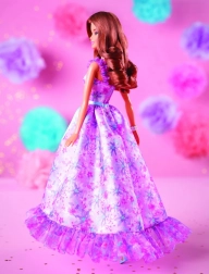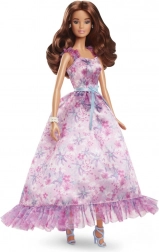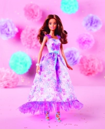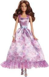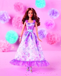 Objevte dokonalý narozeninový dárek s panenkou Barbie Birthday Wishes. Tato elegantní panenka je oblečena do překrásné fialové šaty s květinovým vzorem, která upoutá svým stylem a detailem.