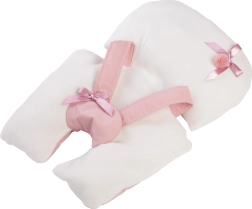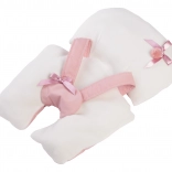 Měkká podložka s dekorativní mašlí a bezpečnými popruhy poslouží jako praktická židlička pro stabilní usazení panenky.