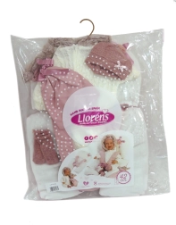 Stylová sada pro panenky NEW BORN velikosti 40–42 cm zahrnuje 3dílný obleček s ozdobným kapesníčkem a měkkou podložku s mašličkou a popruhy, kterou lze použít jako praktickou židličku pro panenku. Ruční výroba ve Španělsku zaručuje kvalitu a detailní zpracování – ideální doplněk pro malé chůvičky od 3 let.