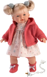 Stylový 4dílný obleček pro panenku LLORENS o velikosti 33 cm potěší každou malou maminku. Ruční výroba ve Španělsku zaručuje kvalitu a precizní zpracování, součástí jsou i ozdobné gumičky do vlásků pro doladění vzhledu. Ideální pro kreativní hru a rozvoj jemné motoriky, doporučeno od 3 let.