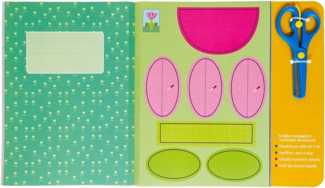 Díky tomuto sešitu se děti hravou formou naučí stříhat, skládat a lepit. Obsahuje: