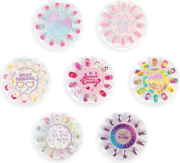 S touto sadou falešných nehtů Totally Trendy máte k dispozici nespočet možností, jak vyjádřit svou kreativitou. Obsahuje sedm samostatných sad nehtů, které snadno zvolíte dle své nálady a stylu. Každá sada obsahuje 12 nehtů ve dvou velikostech pro palce, což zaručuje pohodlí a flexibilitu.