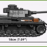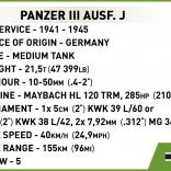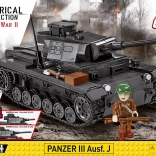 COBI Panzer III Ausf. J je precizně zpracovaná stavebnice inspirovaná východní frontou druhé světové války. Model nabízí otevřitelný poklop, otočnou věž, pohyblivou hlaveň a funkční kola s pásy. Díky bohatým potiskům působí tank realisticky a věrně kopíruje tvary historického originálu.