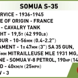 SOMUA S-35 patřil mezi nejlepší francouzské tanky na začátku druhé světové války. Vyznačoval se charakteristickou siluetou, elektricky poháněnou otočnou věží a účinným 47mm kanónem. Tato stavebnice věrně zachycuje klíčové rysy legendárního stroje v kompaktním provedení, které si najde místo na pracovním stole i v poličce sbírky.