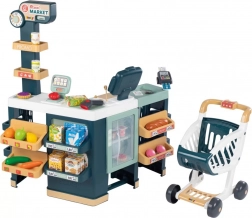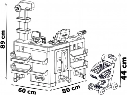Zábavný a interaktivní supermarket SMOBY je ideální pro děti, které se chtějí ponořit do světa nákupů a prodejů. Tento hrací set obsahuje vše, co byste očekávali ve skutečném obchodě, včetně pokladny se světelným a zvukovým skenerem, mechanické váhy a čtečky kreditních karet. Skvělým doplňkem je nákupní košík, který usnadňuje dětské hry na nakupování.
