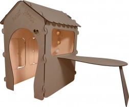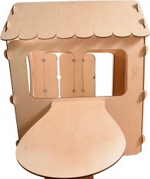 Domek také obsahuje praktický stoleček, kde si děti mohou hrát nebo tvořit. Je vyroben z dřeva s přírodním vzhledem, což mu dodává estetický a přirozený vzhled, který se hodí do každého zahradního nebo vnitřního prostoru.