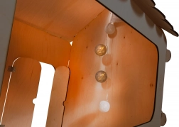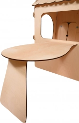 Boční stoleček nabízí prostor pro kreslení, hru či jiné aktivity. Přidává interaktivitu celému domečku.