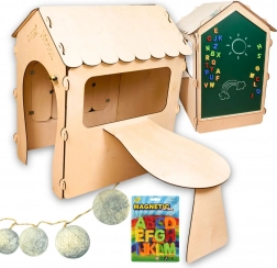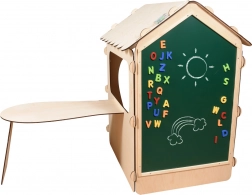 Domeček obsahuje rozměrnou magneticko-křídovou tabuli pro vzdělávací hry s mnoha písmeny.