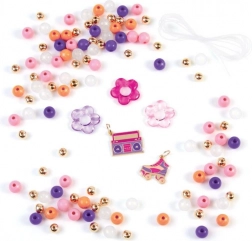 Sada obsahuje čirou elastickou šňůrku, 23 měnících se korálků, 49 klasických korálků, 39 zlatých korálků, 3 květinové přívěšky, 2 kovové přívěšky, návod a praktický úložný box.