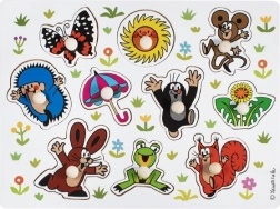 Toto velké dřevěné puzzle s motivy KRTEČKA a jeho přátel přináší dětem od 2 let zábavnou formu učení. Každý dílek má dřevěný knoflík pro snadné uchopení, díky čemuž děti snadno trénují správné přiřazování tvarů do otvorů na základní desce.