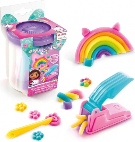 Objevte kreativní sadu inspirovanou oblíbeným seriálem GABBY'S DOLLHOUSE. Tato sada s modelínou ve fialovém kelímku podporuje jemnou motoriku, kreativitu a soustředění dětí. Díky barevnému pohádkovému designu a zábavným doplňkům si děti užijí hodiny tvoření a her v kouzelném světě kočičích kamarádů.