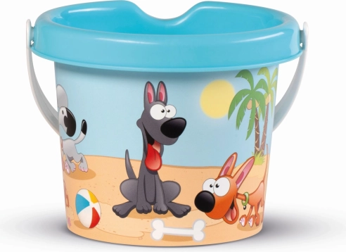 Barevný kyblík s motivem veselé pejskové postavičky, ideální pro hraní na písečku. Vyrobený z kvalitních plastů v Itálii, zaručuje bezpečné a zábavné chvíle pro vaše dítě.