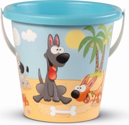 Středně velký kyblík na písek s motivem hravého pejska, vyrobený v Itálii z kvalitních plastů. Perfektní pro malé stavitele od 10 měsíců věku. Pevný a lehký design zajišťuje snadné přenášení.