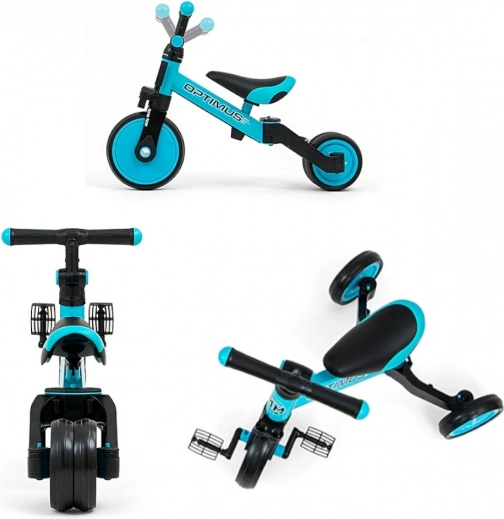 Odrážedlo 3v1 OPTIMUS roste s vaším dítětem – od prvních krůčků v režimu stabilní tříkolky, přes trénink šlapání s pedály, až po rychlé a lehké klasické odrážedlo. Díky kvalitním materiálům a promyšlené konstrukci podporuje rozvoj motoriky, síly nohou a koordinace.