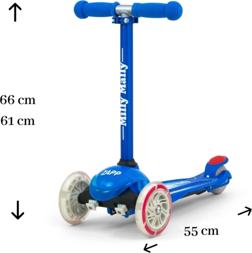 Dětská koloběžka Zapp Milly Mally je navržena s ohledem na potřeby dětí. Díky hliníkovému vyjímatelnému řídítku je mimořádně lehká. Antiskluzové rukojeti s ochrannými kryty chrání ruce malého cestovatele, a podstavec pokrytý speciálním antiskluzovým povlakem zajišťuje lepší přilnavost. Díky těmto funkcím se dítě bude správně a rychle rozvíjet, přičemž si užije velkou dávku zábavy.