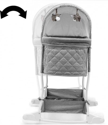 Košilka je vybavena praktickým spodním úložným košem s dvěma komorami pro potřeby dítěte. Její intuitivní obsluha umožňuje plynulé přechody mezi funkcemi košilky a postýlky. Potahy boudičky a korbičky jsou odnímatelné pro jemné praní, a měkká matrace zajišťuje maximální komfort spánku.