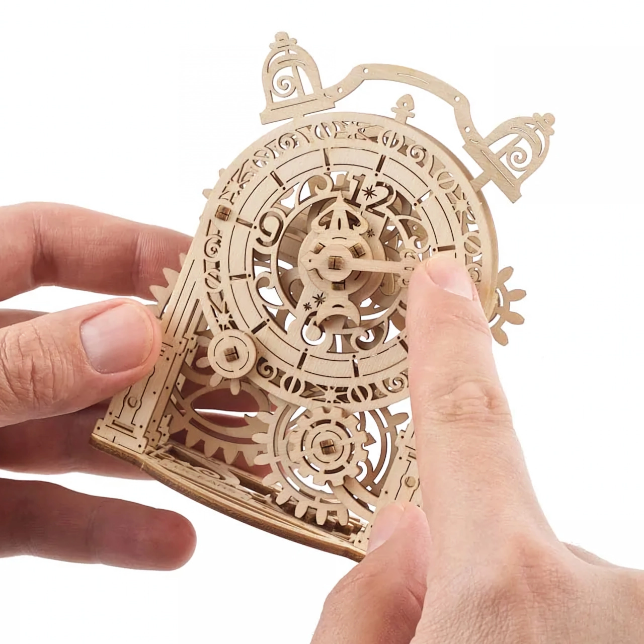 Sestavte si nostalgický dekorační budík z přírodního dřeva a užijte si jedinečné spojení zábavy, vzdělání a designu. Model vyniká bohatými ornamenty, realistickým chodem ručiček a jemným klapáním kmitajících zvonků. Díky nízké obtížnosti je vhodný pro začátečníky i mladé konstruktéry od 14 let.