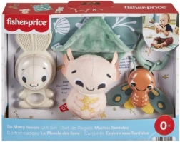 Dárková sada FISHER‑PRICE Svět smyslů je promyšlený výběr prvních hraček pro miminka, která lákají k objevování díky kontrastům, různým texturám a jemným zvukům. Každý kousek je navržen pro bezpečné uchopení, uklidnění při prořezávání zoubků a podporu raného senzorického vývoje.