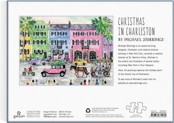 Poznejte kouzlo malebných ulic Charlestonu během vánoční sezóny díky puzzlu Vánoce v Charlestonu od Michaela Storringse. Toto umělecké dílo nejenže poskytuje úžasnou možnost relaxace, ale také rozvíjí vaše logické myšlení a smysl pro detail.
