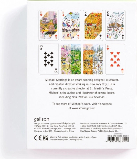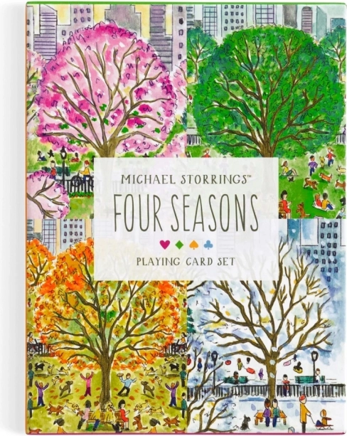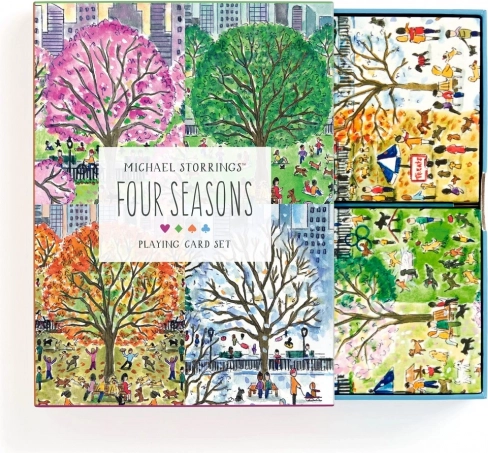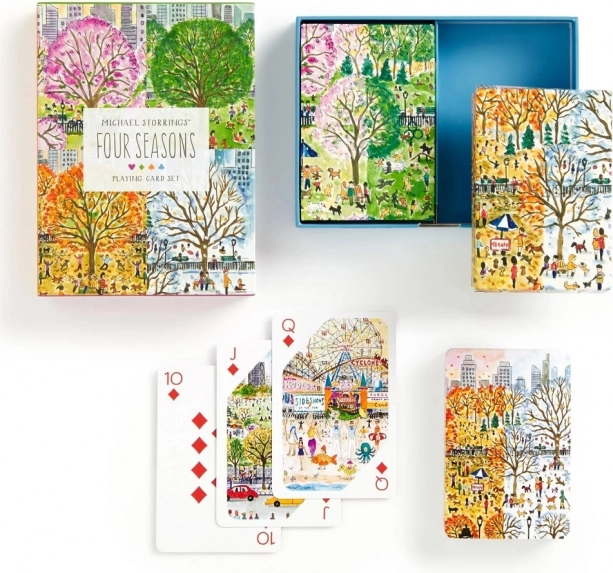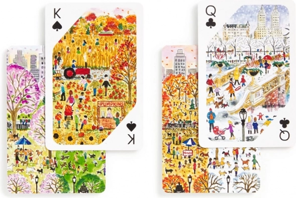 Tato designová sada přináší do vašich herních večerů unikátní atmosféru. Každý balíček zdobí originální ilustrace městských scén a krajin inspirovaných jarem, létem, podzimem a zimou. Dva kompletní balíčky jsou uloženy v pevné zásuvkové krabici s magnetickým zavíráním pro snadné a bezpečné uložení.