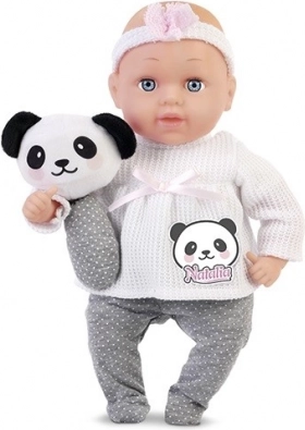 Roztomilé miminko NATALIA o velikosti 33 cm s měkkým tělíčkem a atraktivní hračkou je ideální pro každodenní hraní i uklidňující usínání. Díky příjemným materiálům, stylovému oblečku a realistickému vzhledu podporuje fantazii, pečovatelské dovednosti a jemnou motoriku.