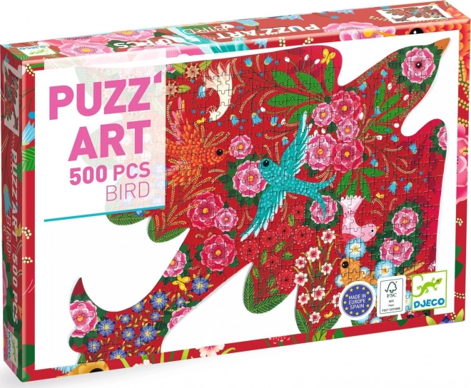 Originální tvarované puzzle s motivem ptáčka od značky Djeco přináší 500 dílků plných barevných ilustrací, plakát 1:1 pro snadnější skládání, kvalitní FSC papír a výrobu v Evropě – ideální zábava pro děti od 8 let i dospělé.