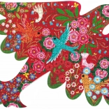 Jedinečné tvarované puzzle s bohatými květinovými motivy potěší oko i mysl. Po složení se promění v elegantního ptáčka vhodného i jako dekorace.