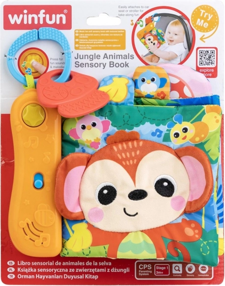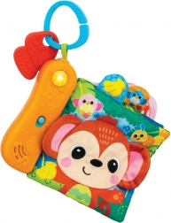 Objevte hravou knížku pro nejmenší, která rozvíjí smysly a jemnou motoriku. Nabízí hudbu a zvuky po stisknutí tlačítka, měkké provedení pro bezpečné hraní, texturované kousátko pro úlevu při prořezávání zoubků a dětské zrcátko a pískátko pro ještě více zábavy. Ideální na cesty, s tlačítky ON/OFF a Hi/Lo pro nastavení hlasitosti. Baterie 2× AAA jsou součástí balení.