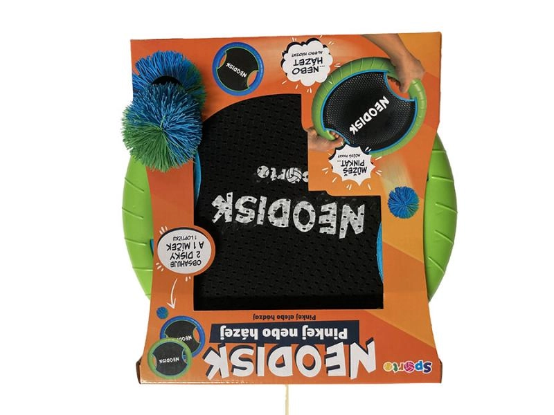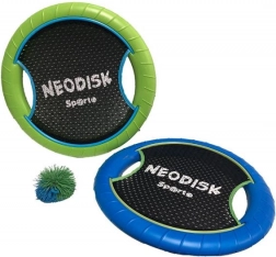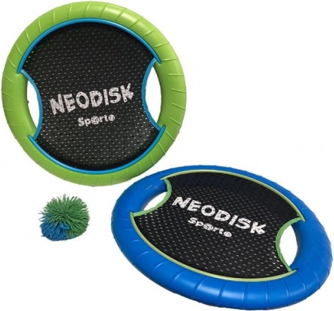 Neodisk Sporto je akční set pro rychlou a nenáročnou venkovní hru. Každý disk má pevný, ale lehký okraj a pružnou síť pro snadné chytání i odrážení měkoučkého míčku. Díky jednoduchým pravidlům se do hry okamžitě zapojí celá rodina.