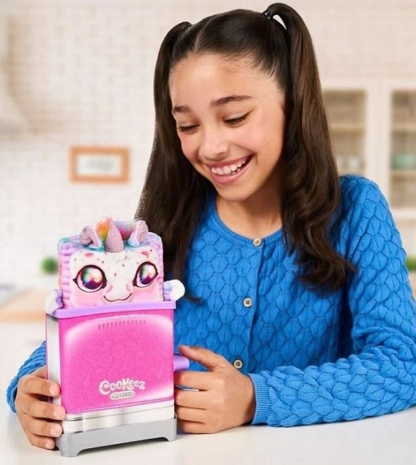 Hrací sada Cookeez Makery promění dětskou kuchyňku v magickou pekárnu. Stačí vložit kartičku ve tvaru krajíce, stisknout páčku a po „opečení“ se objeví měkoučký, barevný a voňavý plyšák. Děti si zamilují moment překvapení i realistickou imitaci přípravy toustů.