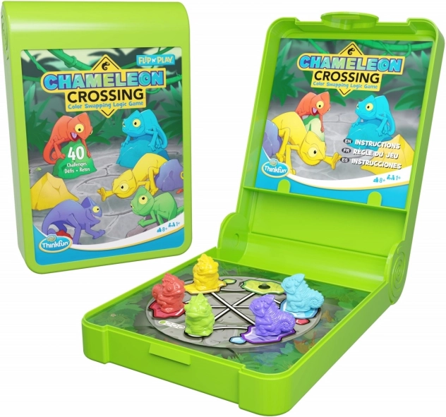 Vydejte se na dobrodružnou cestu s hrou ThinkFun Chameleon Crossing, kde je vaším úkolem dovést pět ztracených chameleonů na správný domovský kámen. Hra je navržena tak, aby byla zábavná pro celou rodinu a zároveň učila děti důležitým logickým dovednostem.