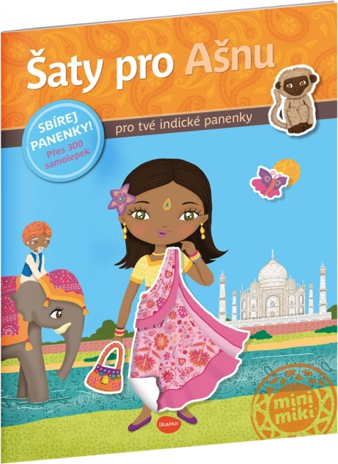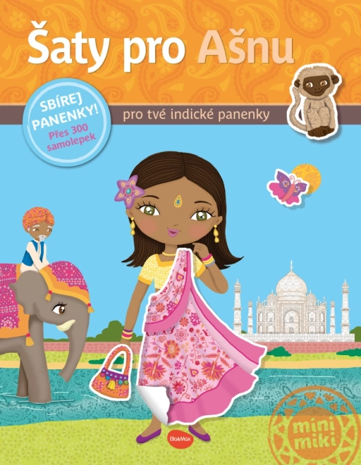 Kniha Šaty pro Ašnu – kniha samolepek vezme malé čtenáře na barevnou cestu po Indii. Spolu s panenkou Ašnou děti nahlédnou do každodenního života, poznají místní zvyky, navštíví zajímavá místa a objeví tradiční módu. Hravé úkoly a samolepky rozvíjejí kreativitu i jemnou motoriku.