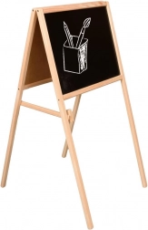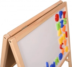 Rám z odolného dřeva zajišťuje stabilitu a dlouhou životnost, zároveň je tabule skládací, takže ji po hře snadno uložíte. V balení najdete vše potřebné k okamžitému použití: 26 magnetických písmen, 3 křídy, houbu a suchý fix.